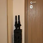 De har soffa, strykutrustning och mathörna. Det inkluderar ett delat badrum med handikappdusch och dusch.